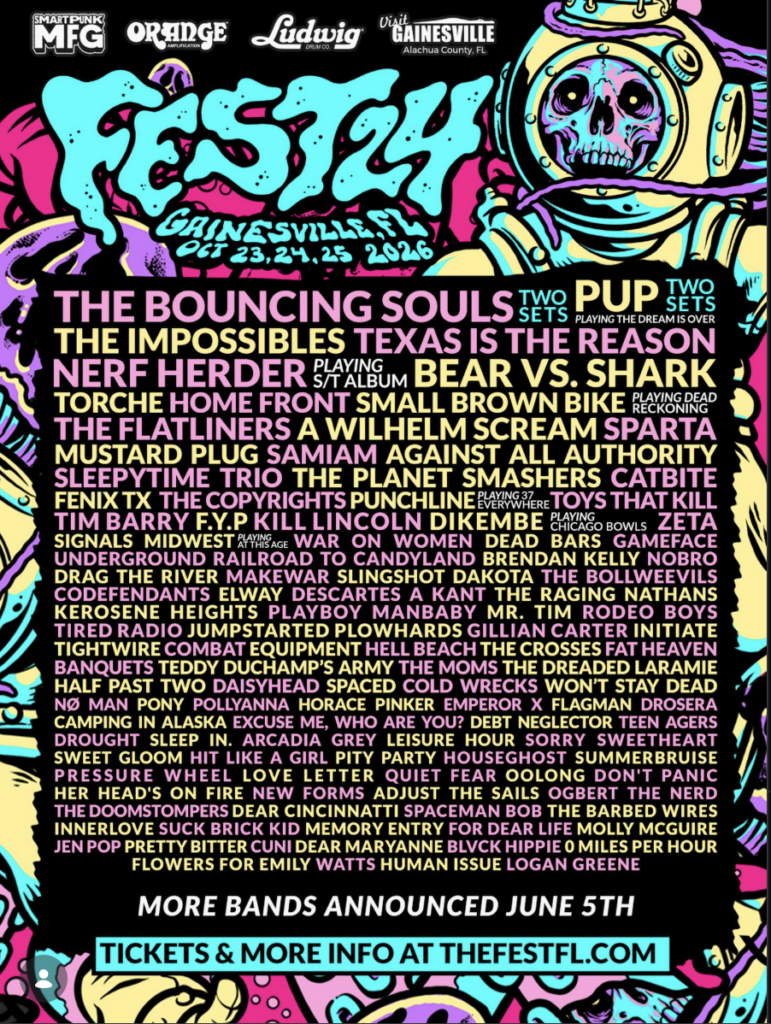 News Fest 24 Announces Lineup By Wolf · April 17, 2026 Fest has begun announcing it's 2026 lineup. The first 114 band have been revealed and 200+ more will follow in June. social ← Previous The Flatliners Release Video for 'Pulpit"