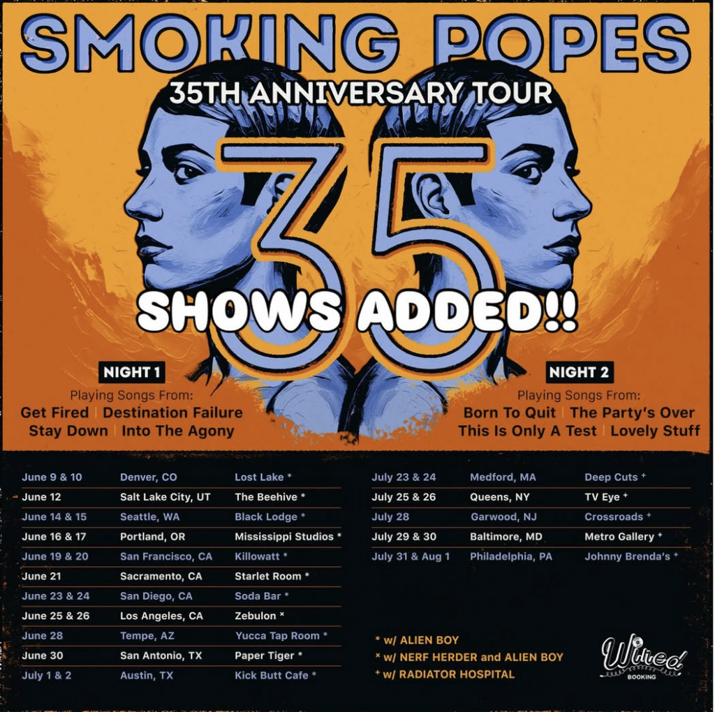 Smoking Popes have announced their 35th anniversary tour, with most cities featuring two-night runs where the band spotlights different albums each night.